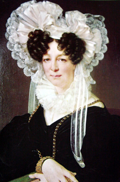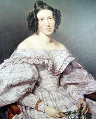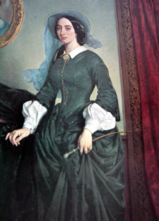 승마용 복장인 이 그림은 여성복식이 남성복에 근사한 면을 보여준다. 흰 칼라와 소매는 남성의 슈미즈를 연상시키며 간편한 느낌의 복식이다.