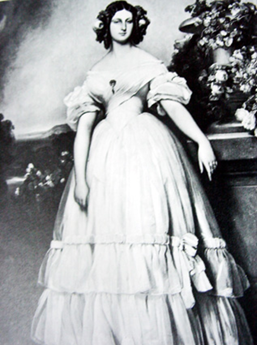 여성복식도 가는 허리를 강조했으며 여성들은 다시 코르셋과 버팀대를 착용하고 X자 스타일의 실루엣과 레이스와 리본, 주름을 층층이 넣은 볼륨감있는 스커트가 유행하였다.