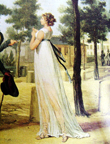 •18세기 초에 이루어진 폼페이와 헤르쿨라네움의 발견은 고대 그리스, 로마시대에 대한 새로운 관심을 불러일으켰으며 프랑스 여성들은 이 고대도시들의 의상스타일에서 영감을 얻은 의상을 착용하였다. 그 결과 전 시대와는 매우 다른 스타일의 의상이 유행하게 되었다. 여성들은 코르셋을 입지 않았으며, 얇은 머슬린 가운(muslin gown)에 가슴 밑을 강조하는 하이웨이스트형의 'ROBE EN CHEMISE'-속옷형의 드레스-를 착용했는데 이것은 끈으로 엮는 그리스 로마식-고전식- 샌들과 함께 착용했다. 이것은 19세기 초의 엠파이어 가운의 특징이 되었다. 여성들은 이 얇은 머슬린 가운의 윈피스를 겨울에도 입고 다녔으며 심지어 옷에 물을 뿌려 속살이 살짝 드러나 보이게 하며 하늘거리는 느낌을 더 하고자 하였다. 언제나 그렇듯이 여성들의 유행에 대한 집착은 집요해서 이 시대의 여성들은 실제로 이러한 유행의상으로 인해 폐렴에 걸리는 일이 더 많았다.